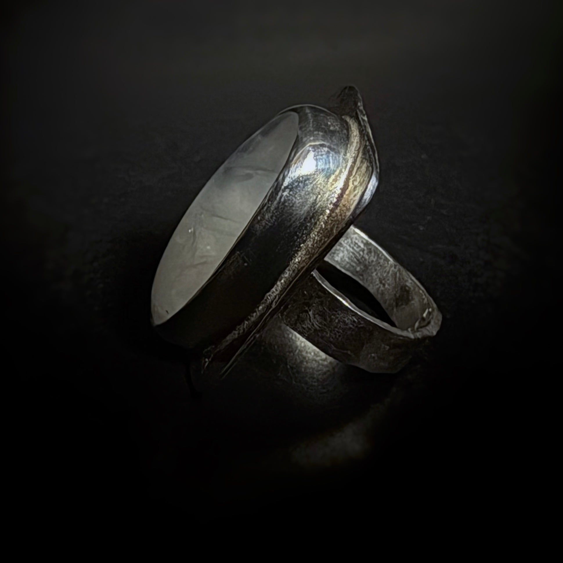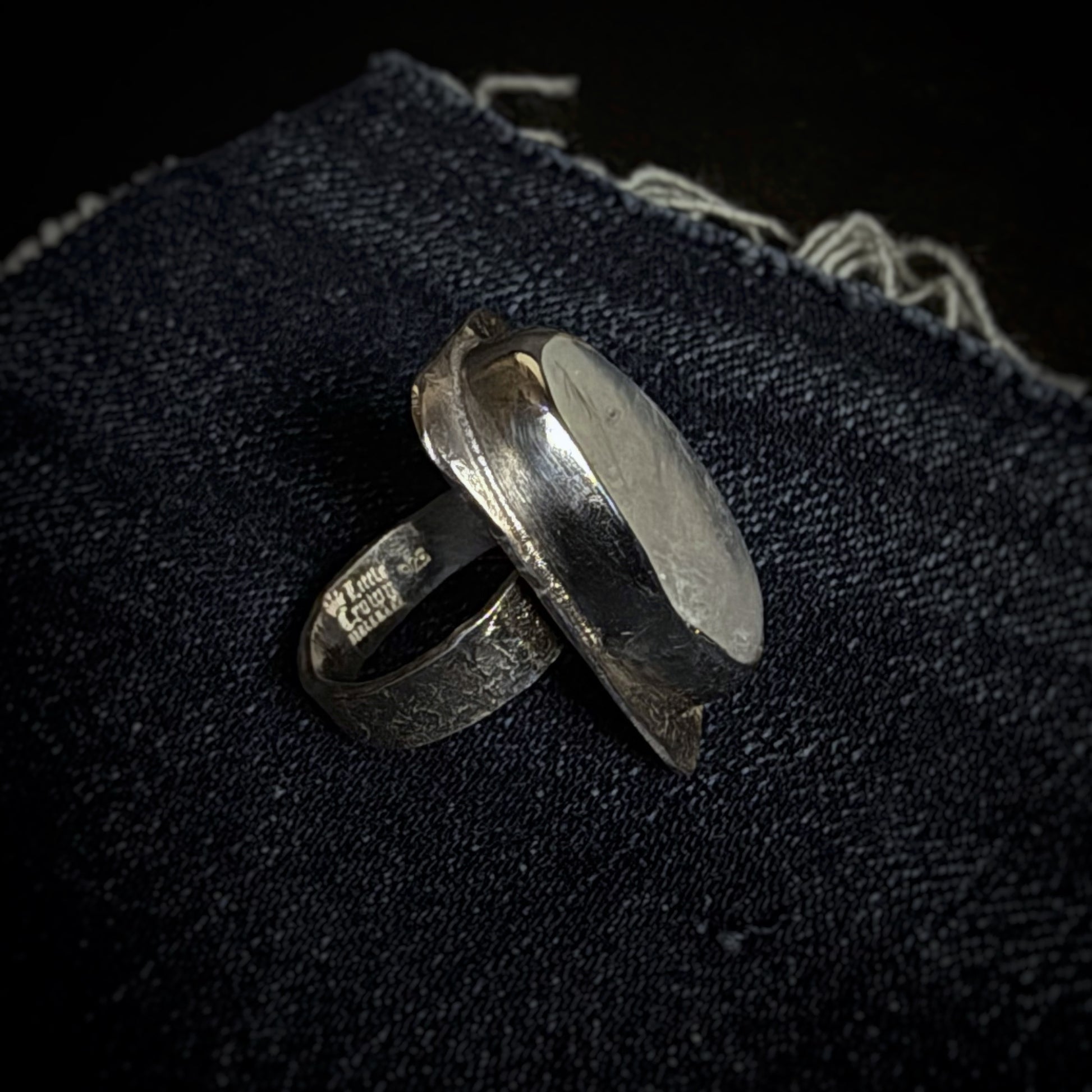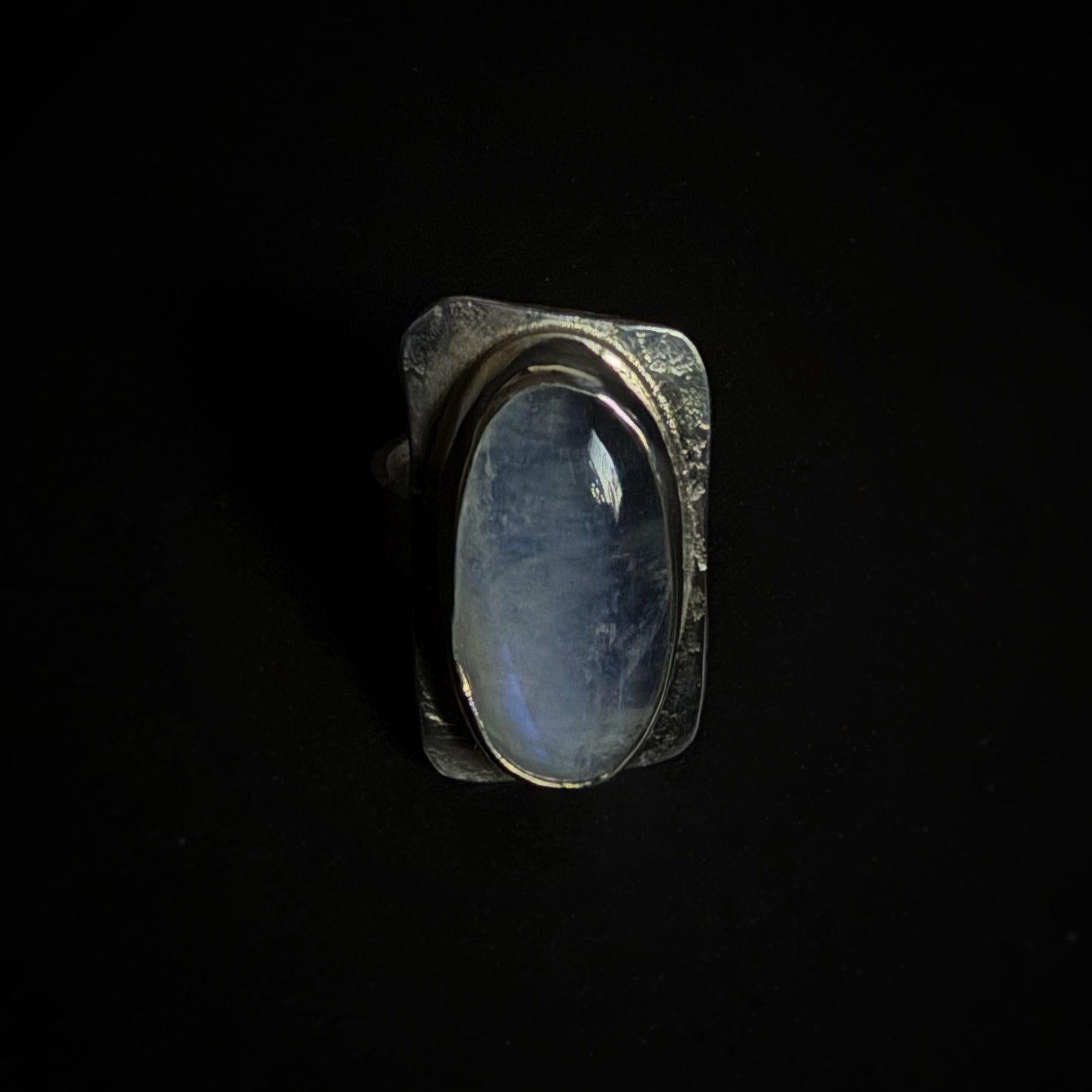 Set on a 20g Sterling silver textured backplate atop a 4mm wide Sterling silver textured band.