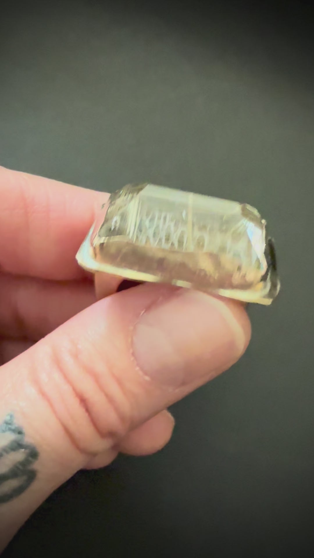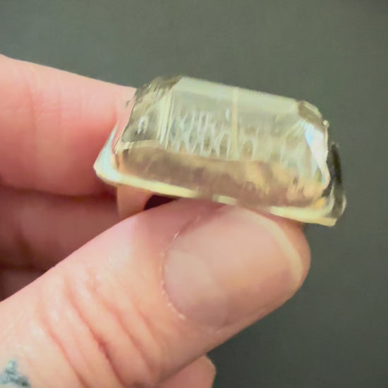 Where do I start!?! This ring was a “Hooooo mah gawd” mo for sure when I pulled it out of the ball vise after setting this cathedral-like, emerald cut (set culet up) rutilated quartz. Oh, and dig that snakeskin it’s set over…one of my dogs found it on a trail run yeeeears ago in Park City. I love the earthy vibe the snake skin brings to this out-of-this-world stone…and how the golden rutiles “pop” off of the pattern.